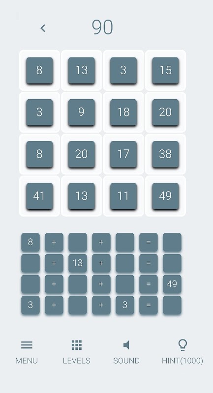 There's a board with full of numbers. Tap the numbers to make sums in rows and columns to predefined numbers. The board is in different size, which reflects difficulty levels: