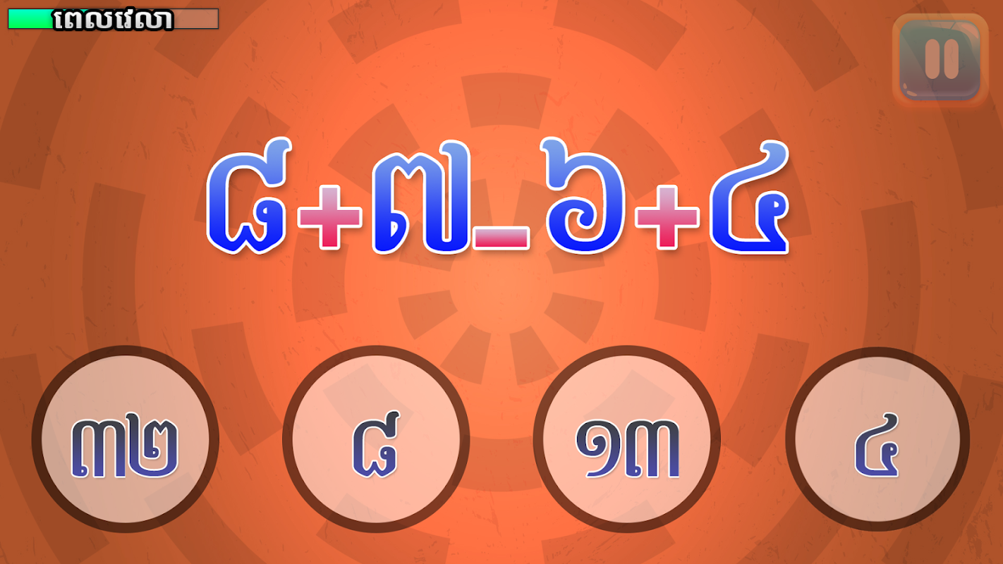 This game is for all age who wish to challenge and strengthen basic math operation of Khmer Numbers include addition, subtraction, multiplication and division.