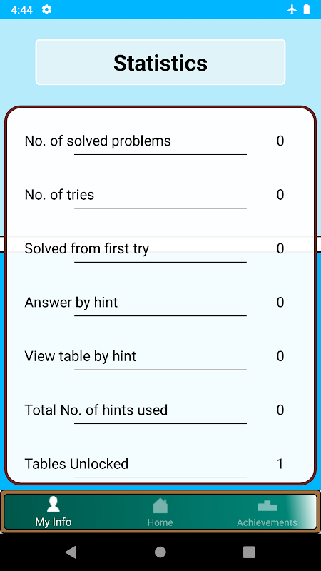 Also you can see your progress in the statistics page to know which tables you're good at and which you need to practice more and solve more problems in.