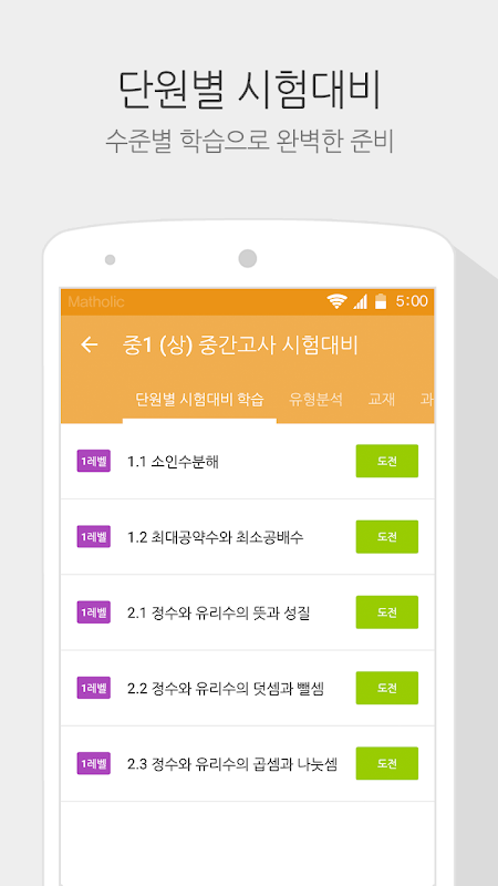 4 시험대비 단원별 학습은 각 단원별로 현재 학습 진행 상태를 정확히 진단하여 선생님과 학부모가 그에 대한 대비를 철저히 할 수 있도록 해줍니다.