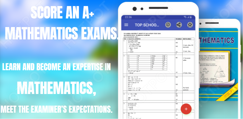 Mathematics: Top school papers mobile application gathers Mathematics papers from top Governmental schools and their marking schemes. The App is set to equip students with skills and expertise on how to tackle Mathematics Questions. It contains Question papers plus their marking schemes. This app features questions from the following topics: