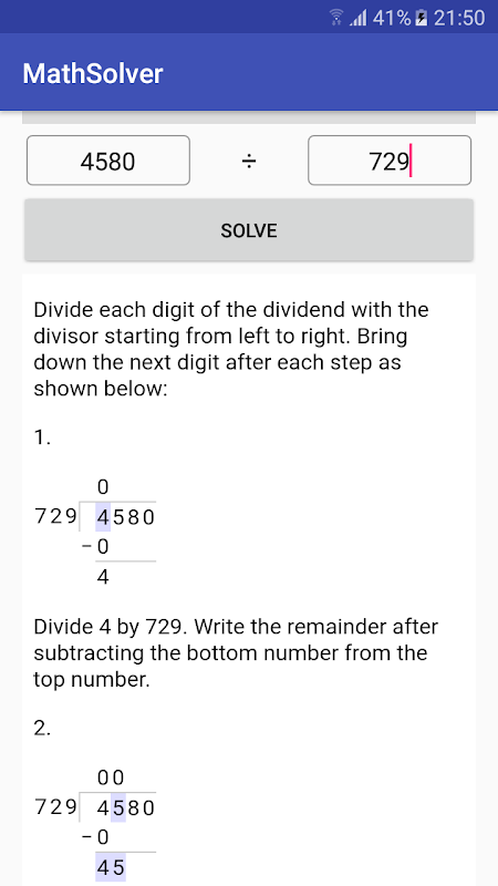 MathStep là một ứng dụng toán học miễn phí nhằm giúp đỡ những người mới bắt đầu, những người phải vật lộn với các khái niệm toán học cơ bản. Ứng dụng này sẽ chỉ cho bạn giải pháp từng bước cho tất cả các loại vấn đề liên quan đến các con số trong giảng dạy trong lớp học hoặc cuộc sống hàng ngày. Ứng dụng này cũng phục vụ như một chương trình bồi dưỡng toán học cho người lớn và người trợ giúp bài tập về nhà cho những người mới học.