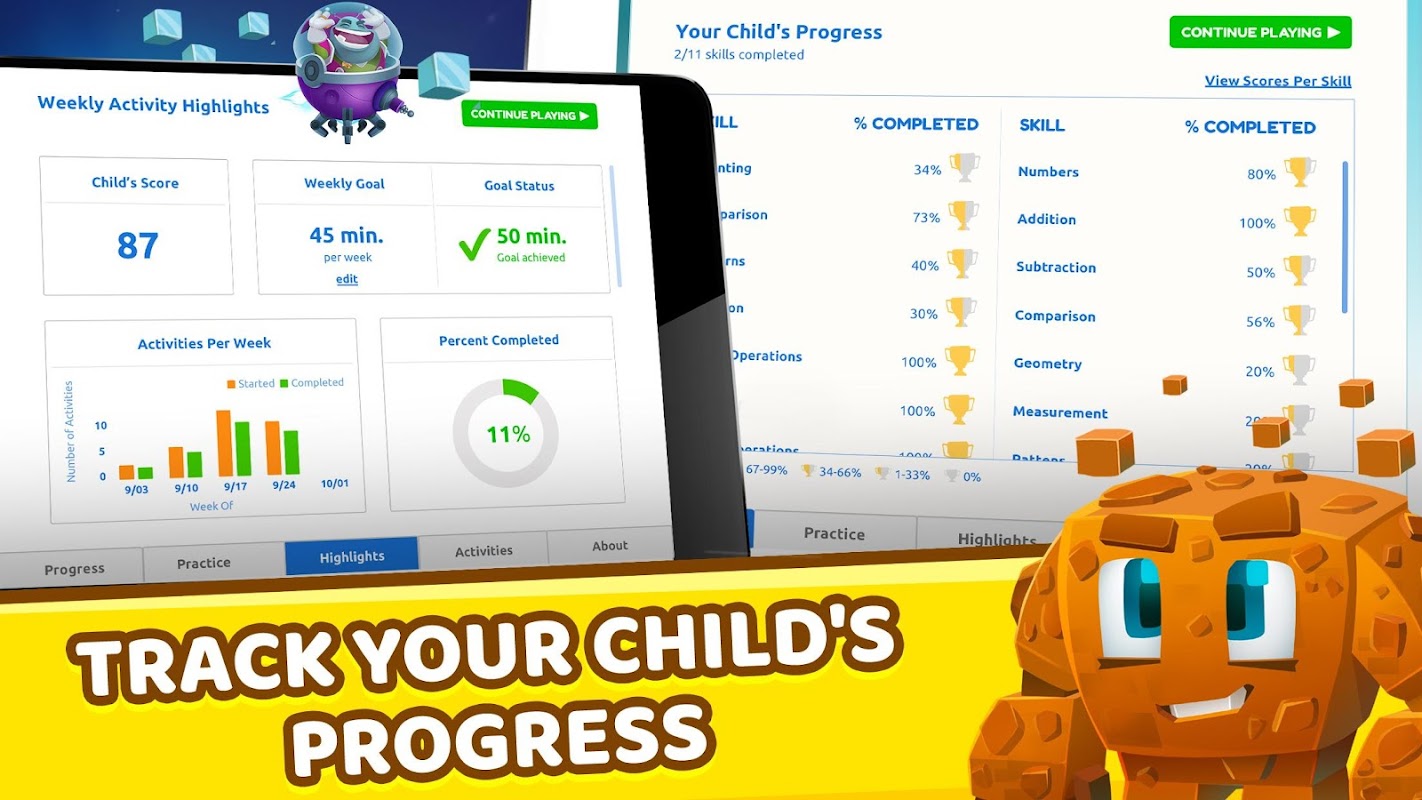 ·The “Skip” mechanism is improved to ensure that your child never feels stuck while learning mathematics and having fun