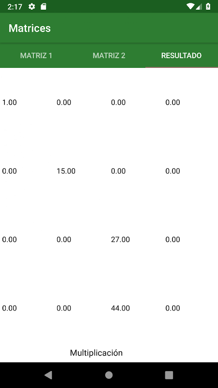 La aplicación es una calculadora muy sencilla que nos permite multiplicar aplicaciones de 4 x 4