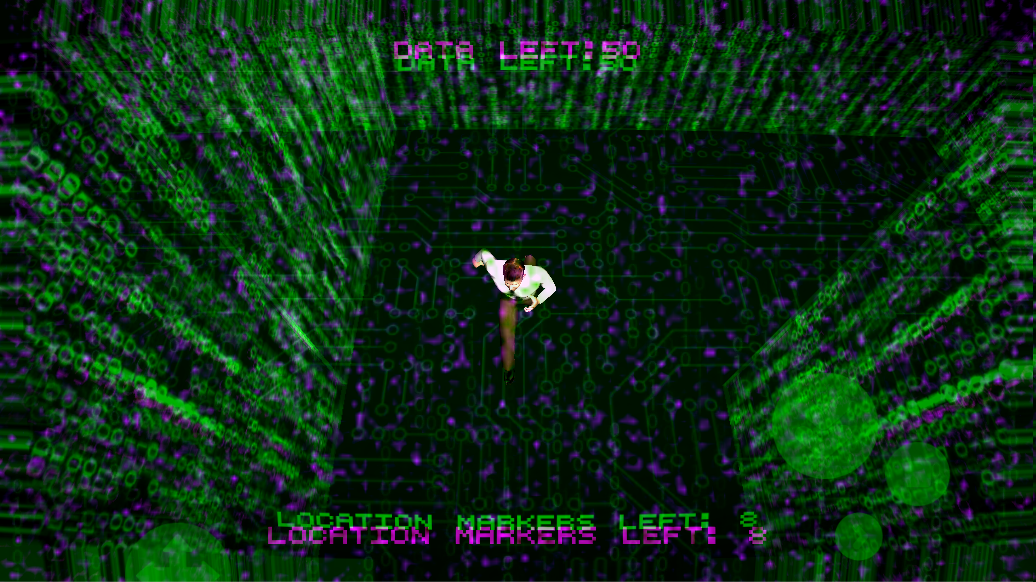 In a randomly generated maze, use the joystick on the left side of the screen to move the player to collect all the data. You can leave up to 8 location markers by using the button on the right side of the screen whenever you need to remember where you came from. Also remember, The Virus will be looking for you, chasing you down. So be careful and do not let him keep you from your mission. Good luck!