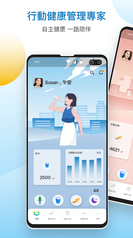 Ghi lại lượng nước uống hàng ngày, giấc ngủ, số bước đi, huyết áp, lượng đường trong máu và các dữ liệu khác, đồng thời tích hợp dữ liệu sức khỏe của Android