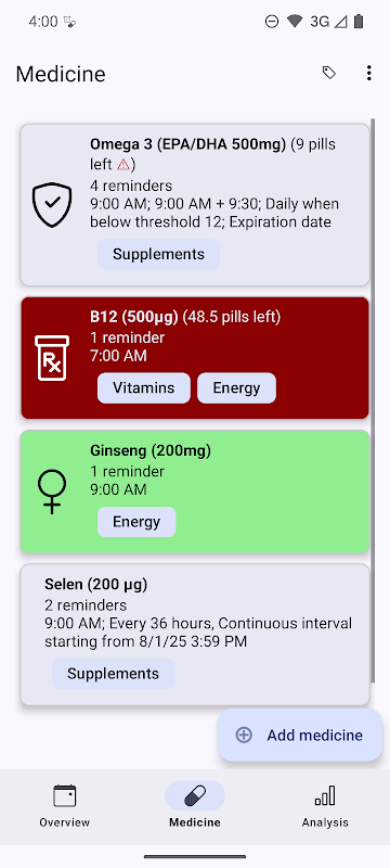 - Quản lý số lượng thuốc không giới hạn với các nhắc nhở tùy chỉnh cho từng loại thuốc (bao gồm các mặc định đơn giản cho nhắc nhở hàng ngày).