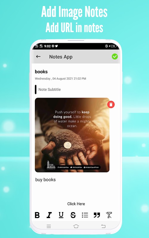 Tiết kiệm thời gian và công sức nhiều như bạn muốn với ứng dụng notepad miễn phí! Chúng tôi cung cấp notepad mới tuyệt vời cho các tính năng Android miễn phí. Sau khi tải xuống ứng dụng, bạn có thể dễ dàng bắt đầu với việc tạo ghi chú ghi nhớ và lưu chúng để tham khảo trong tương lai. Nhập nhiều ghi chú tùy thích và sắp xếp tất cả thông tin quan trọng của bạn ở một nơi duy nhất để bạn luôn có thể tham khảo lại ghi chú của mình để được hỗ trợ trong tương lai.