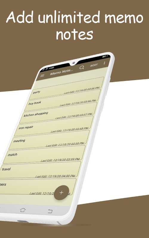 memo là một ứng dụng ghi chú trọng lượng nhẹ và đơn giản cho phép bạn ghi lại suy nghĩ và sắp xếp các ghi chú của mình. Nó mang đến cho bạn trải nghiệm chỉnh sửa sổ tay nhanh chóng và đơn giản khi bạn viết ghi chú, danh sách việc cần làm, danh sách mua sắm, bản ghi nhớ. Ứng dụng ghi nhớ đơn giản của chúng tôi giúp bạn dễ dàng viết ghi chú mọi lúc và mọi nơi. memo là một ứng dụng sổ tay đơn giản và tuyệt vời. Nó mang lại cho bạn trải nghiệm chỉnh sửa sổ tay nhanh chóng và đơn giản khi bạn viết ghi chú, ghi nhớ, e-mail, tin nhắn, danh sách mua sắm và danh sách việc cần làm. Ứng dụng Simple Notes giúp bạn dễ dàng viết ghi chú mọi lúc và mọi nơi. Ghi chú bằng ghi nhớ dễ dàng hơn bất kỳ ứng dụng sổ ghi chép hoặc sổ ghi nhớ nào khác. Ứng dụng của chúng tôi cung cấp nhiều tính năng để lưu trữ bất kỳ loại thông tin nào của bạn, Nó rất thân thiện với người dùng, nhanh chóng và đáng tin cậy. ứng dụng sổ tay này là một ứng dụng đơn giản và nhẹ nhàng cho phép bạn nắm bắt và sắp xếp các ghi chú của mình. Nó cung cấp cho bạn trải nghiệm chỉnh sửa notepad nhanh chóng và đơn giản khi bạn viết ghi chú, notepad, danh sách việc cần làm, danh sách kiểm tra, danh sách mua sắm, ghi nhớ. ghi nhớ là cách dễ nhất để theo dõi những suy nghĩ và ý tưởng của bạn. Nó nhanh, miễn phí và nhẹ trong khi cung cấp rất nhiều tính năng Memo pad hữu ích. Sắp xếp các ghi chú của bạn vào sổ tay. tuỳ bạn. Ghi chú hỗ trợ nó. Ghi chú bằng ghi chú dễ dàng hơn bất kỳ ứng dụng ghi chú hoặc ghi chú nào khác. ghi nhớ sẽ giúp bạn viết, thu thập và nắm bắt các ý tưởng dưới dạng ghi chú, sổ ghi chép, ghi nhớ và danh sách việc cần làm có thể tìm kiếm được. Đó là người lập kế hoạch và người tổ chức duy nhất bạn cần.