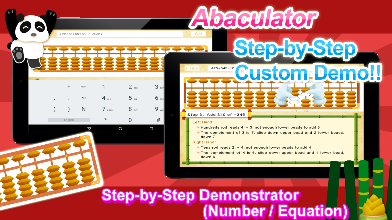 Một công cụ tuyệt vời đó chứng tỏ các bước cho cả hai bàn tay bàn tính số học tâm thần. Chỉ cần nhập số điện thoại hoặc phương trình, Abaculator sẽ chỉ cho bạn từng bước với mô tả chi tiết và giải thích. Bạn có thể tạm dừng và tiếp tục bất cứ khi nào bạn cần, hoặc thậm chí chuyển đổi để hiển thị tập hợp các bước cho số khác hoặc phương trình ở giữa của cuộc biểu tình.