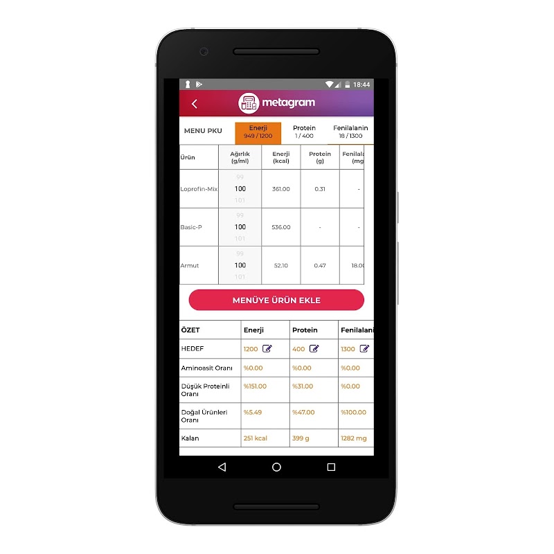 Ứng dụng này được thực hiện cho mục đích lập kế hoạch ăn kiêng của nhân viên y tế trong các bệnh rối loạn chuyển hóa axit amin.