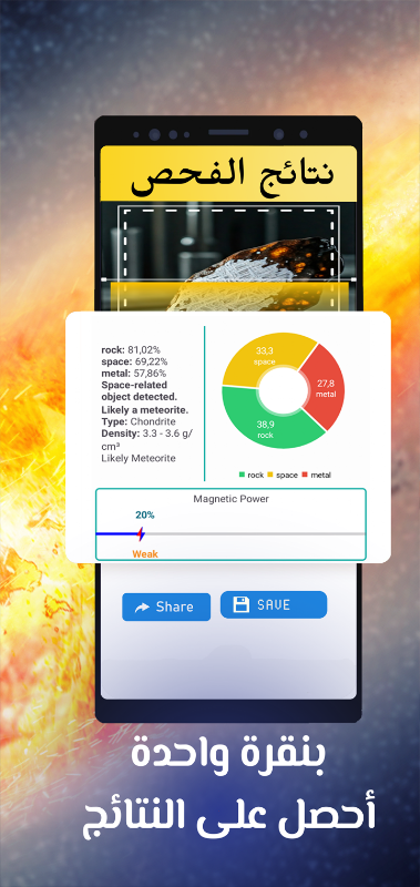 Chỉ cần: Tải lên ảnh của bất kỳ viên đá nào bạn nghi ngờ là thiên thạch, và ứng dụng sẽ cung cấp cho bạn kết quả phân tích tức thì và chính xác với đầy đủ thông tin chi tiết về nó chỉ trong vài giây! Khám phá môi trường xung quanh, nhận dạng đá thiên thạch và hòa mình vào thế giới thiên thạch cùng chúng tôi.