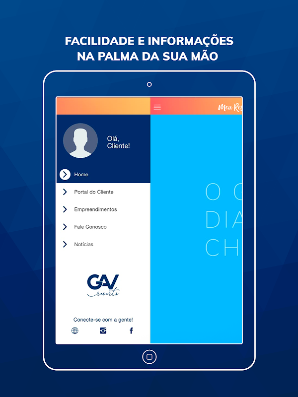 Việc áp dụng các GAV Resorts có giao diện mới! Với nó, bạn có thể truy cập vào tất cả mọi thứ trên điện thoại thông minh của bạn thông qua các khu nghỉ dưỡng.