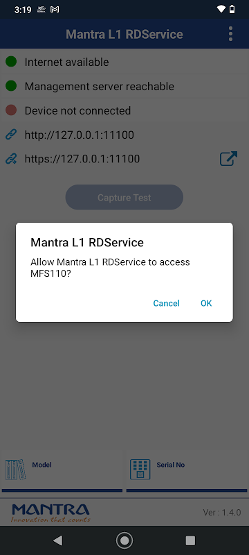 Dịch vụ Mantra L1 RD (Thiết bị đã đăng ký) cho phép xác thực Aadhaar dựa trên sinh trắc học với khái niệm thiết bị đã đăng ký do UIDAI triển khai.