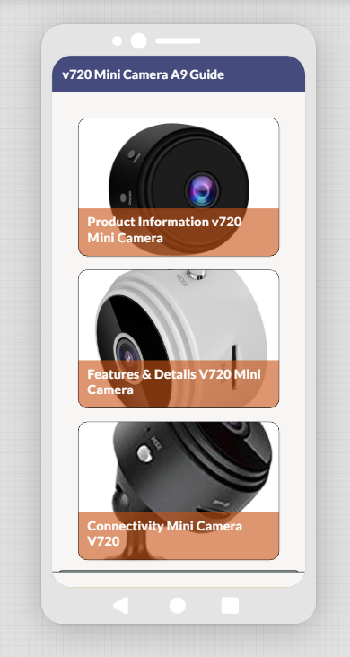 Để tìm hiểu thêm thông tin về cách sử dụng V720 Mini Camera A9, hãy tải xuống ứng dụng hướng dẫn V720 Mini Camera A9 của chúng tôi. Ứng dụng di động của chúng tôi giúp bạn tìm hiểu những điều bạn thắc mắc về Camera mini V720 A9.
