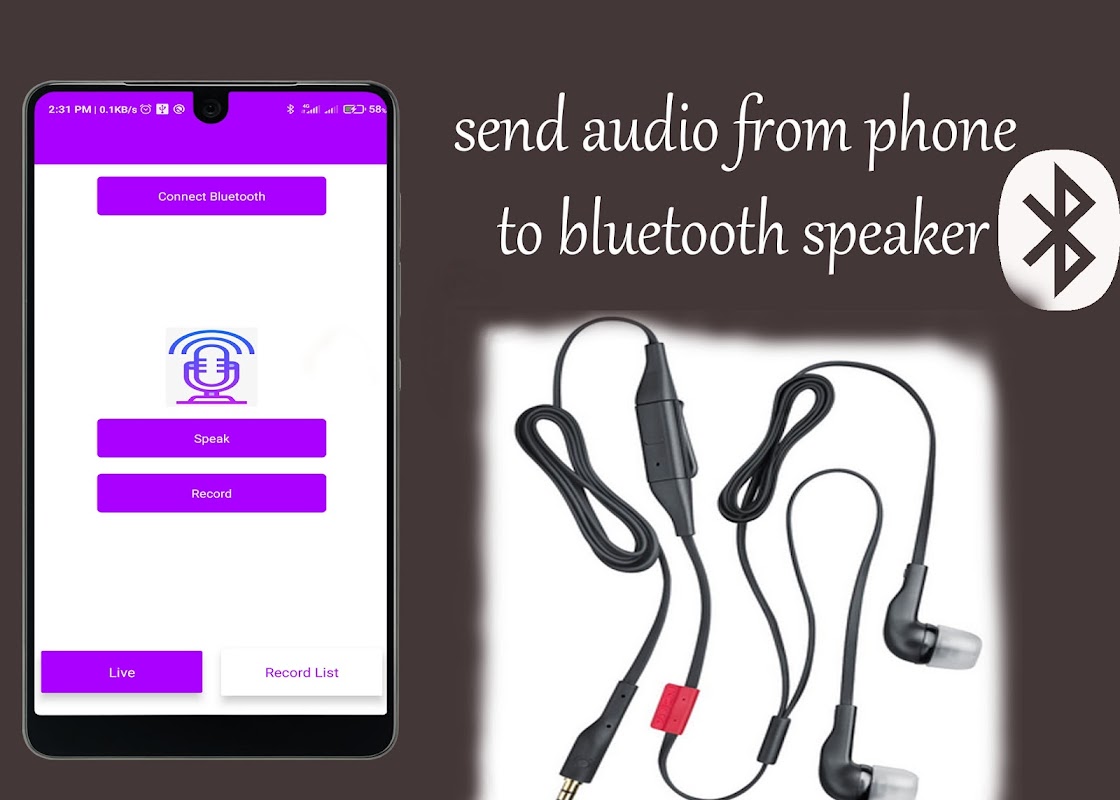 Loa Bluetooth - Micrô trực tiếp gửi âm thanh đến loa bluetooth qua mic bên trong điện thoại của bạn với sự trợ giúp của kết nối bluetooth. Không cần dây khi gửi âm thanh đến loa bluetooth. Bạn có thể sử dụng ứng dụng này làm Mic thời gian thực.