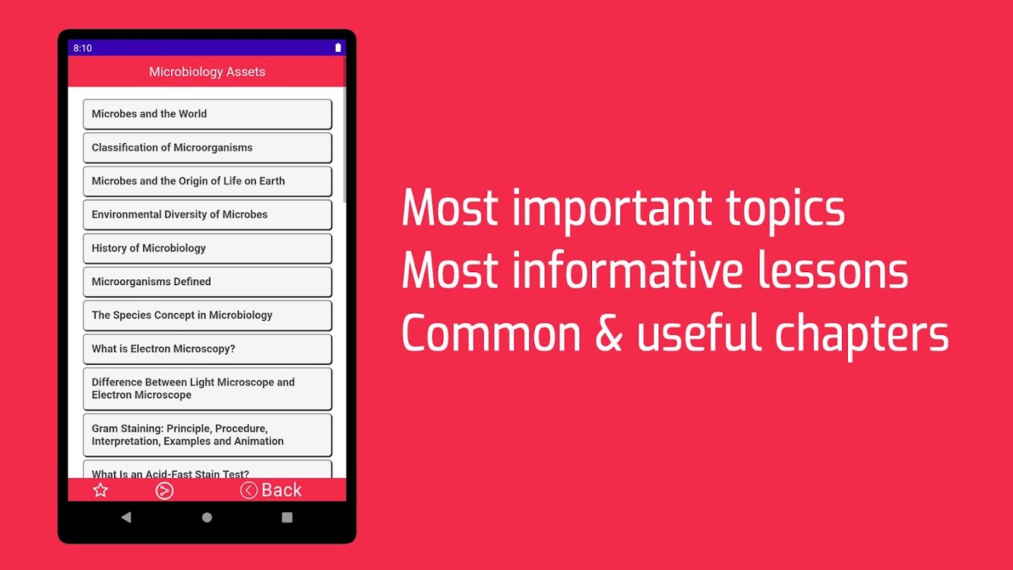 Ứng dụng vi sinh cơ bản rất cần thiết cho sinh viên và người mới bắt đầu. Nó sẽ cung cấp cho bạn hầu hết các chương phổ biến và hữu ích. Ứng dụng vi sinh học này sẽ cung cấp cho bạn ví dụ và giải thích. Vì vậy, bây giờ bạn có thể mang theo bộ sưu tập miễn phí sách vi sinh cơ bản của mình ở bất cứ đâu bằng ứng dụng này và có thể học bất cứ lúc nào.