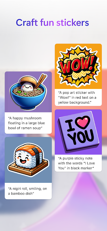 • Nhãn dán: làm sinh động tin nhắn của bạn bằng cách tạo nhãn dán vui nhộn bằng AI. Dễ dàng chia sẻ các nhãn dán này với bất kỳ ứng dụng nhắn tin nào trên điện thoại của bạn chỉ bằng một cú chạm.