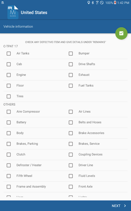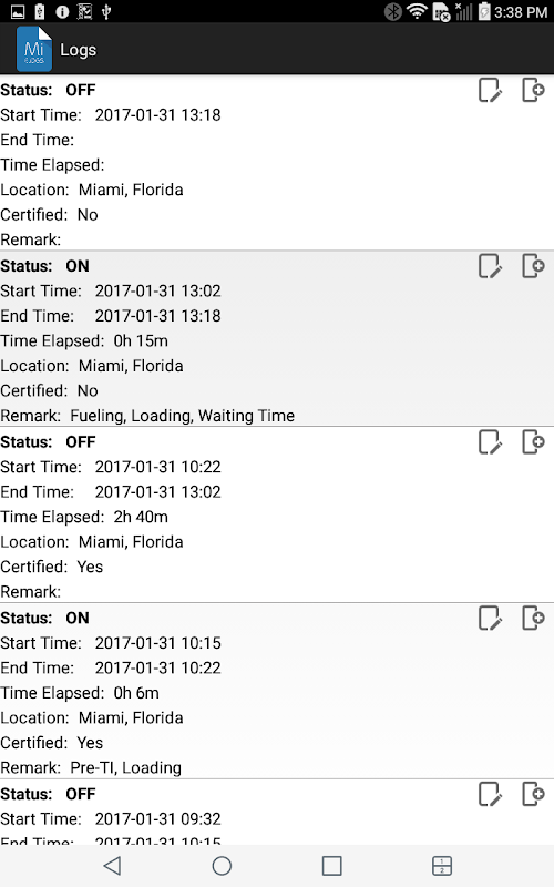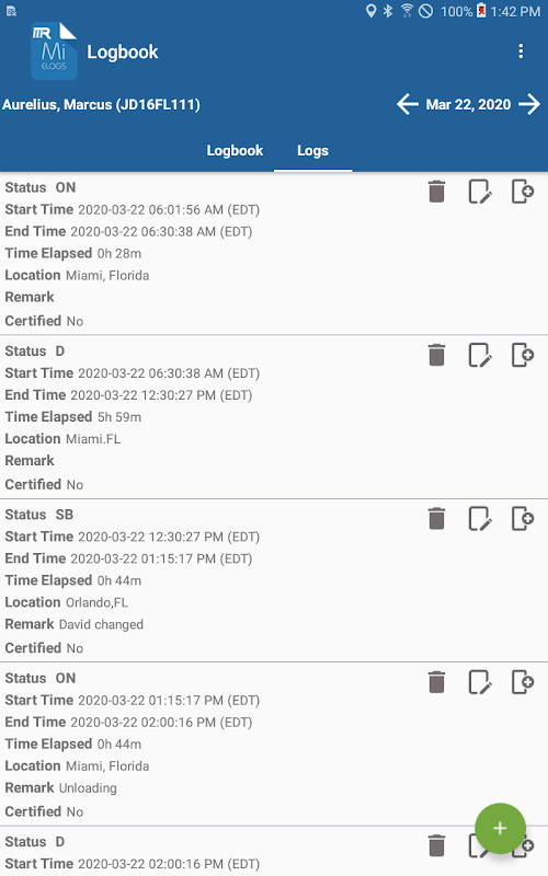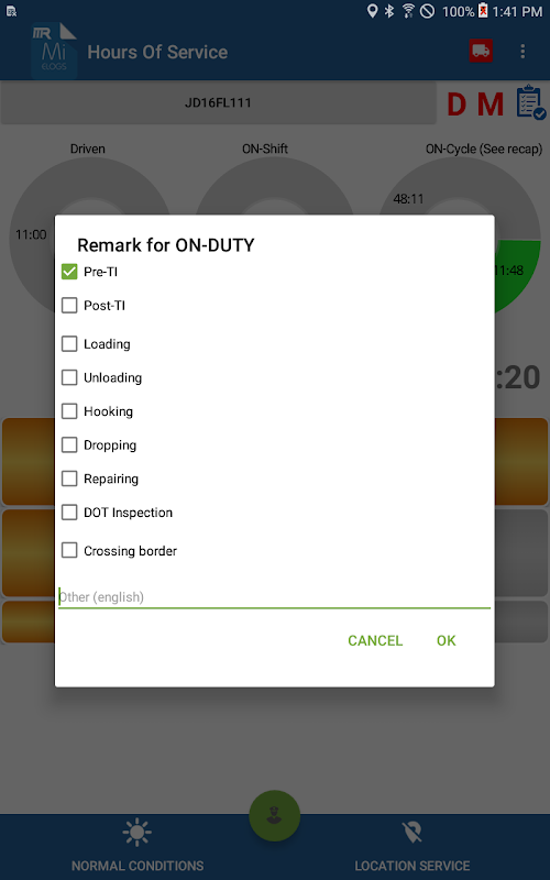 ứng dụng ompliant để ghi lại trạng thái nhiệm vụ của người lái xe và đáp ứng các quy định sau: