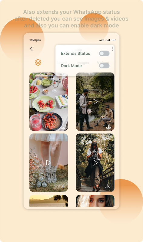 Với tính năng Trình tải xuống trạng thái WhatsApp của chúng tôi, bạn có thể dễ dàng tải xuống và lưu tất cả các video trạng thái WhatsApp yêu thích của mình chỉ bằng vài cú nhấp chuột. Cho dù đó là bạn bè, gia đình hay những người nổi tiếng yêu thích của bạn, bạn có thể lưu tất cả các trạng thái của họ và không bao giờ bỏ lỡ một trạng thái nào nữa. Ứng dụng của chúng tôi rất hiệu quả và thân thiện với người dùng, với giao diện đơn giản giúp dễ dàng duyệt và tải xuống các trạng thái riêng lẻ hoặc thậm chí toàn bộ bộ sưu tập.