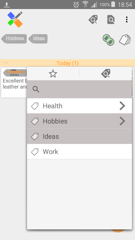 • Organize your own hierarchy of tags. For example, you can create a tag "sport", and within it the tag "football". This will help to quickly locate the note.