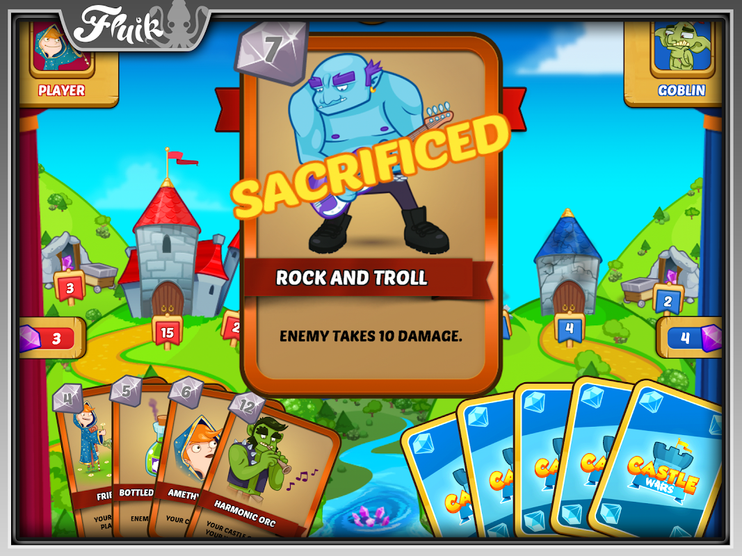 Defend your castle against an onslaught of foes by building up your defenses. A strong Wall and a Strong castle are vital! Increasing your gem production will be key to having an advantage over your opponent, and is done by sacrificing cards. Once you're ready, devastate your enemies with a full on offensive. Lay waste to your opponents and be the Last Castle Standing!