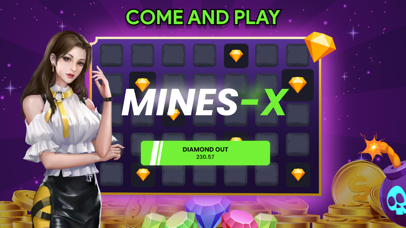 Hãy dấn thân vào cuộc phiêu lưu ly kỳ này của MinesX- Trò chơi tìm kim cương, nơi bạn phải cẩn thận từng bước đi và mỗi bước sẽ khám phá ra kho báu ẩn giấu và có thể dẫn đến những cái bẫy bất ngờ. Trò chơi tìm kim cương này được chơi trên lưới gồm 25 khối, trong đó mỗi khối sẽ ẩn chứa kim cương hoặc mìn. Nhiệm vụ của bạn là phải cẩn thận bước lên những khối này mà không dẫm lên mìn và thu thập càng nhiều kim cương càng tốt. Trò chơi này có sự kết hợp tuyệt vời giữa chiến lược và may mắn, với phần thưởng thú vị và cơ chế đơn giản.