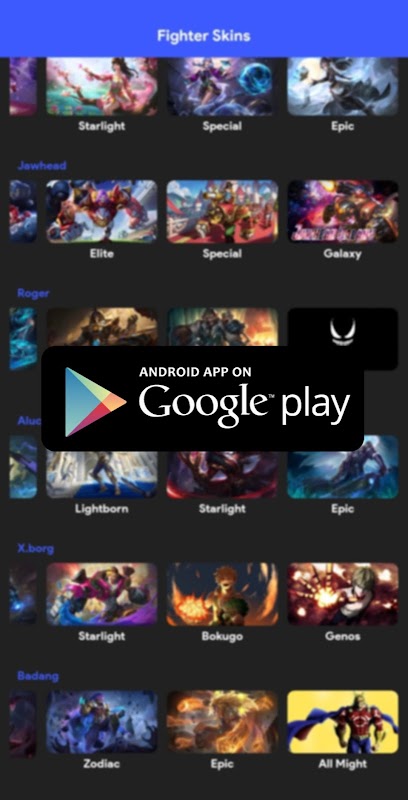 Zolaxis Patcher is a mobile application that demonstrates to you all heroes skins, you will get to know all the spells, skills, hit damage and special actions and the benefits that comes with changing and customizing the visual appearance of the lengdary characters with skins including all the kinds of heroes.