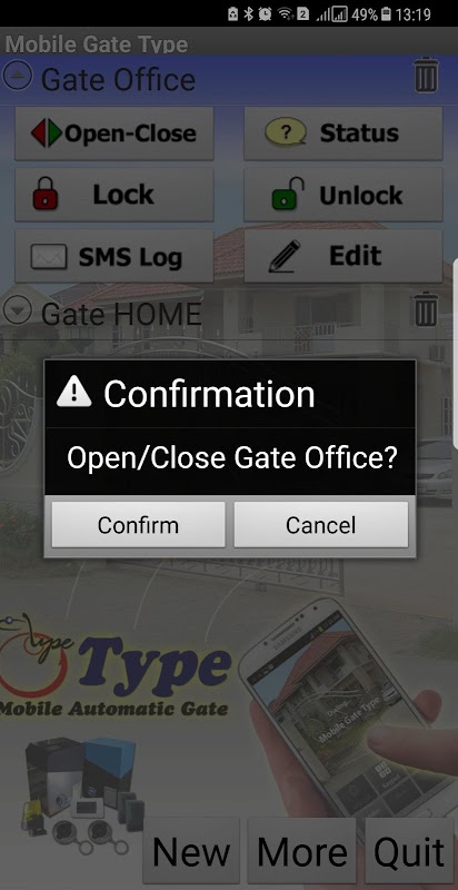 Mobile Gate Type Application: it can easily turn your Smart Phone into GSM Automatic Gate Remote Control which can open and close your gate from anywhere with absolutely Free of Charge. Because when you call to open the gate, the motor will remember you cell phone number and “Reject” your call and then open or close the gate.