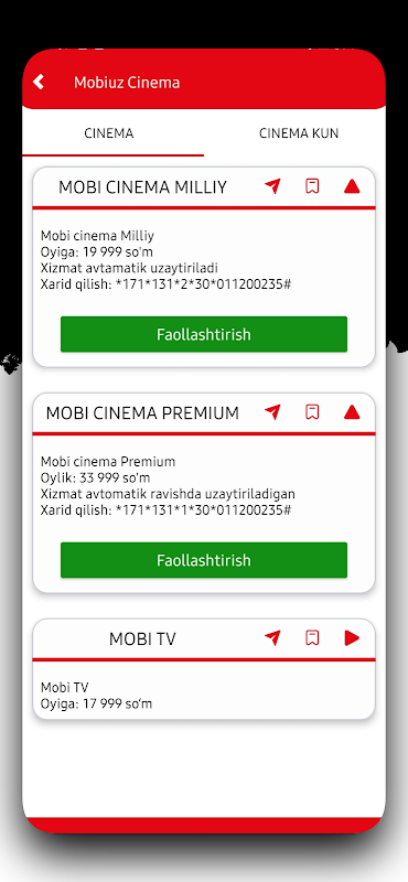 2. Xizmatlarga a'zo bo'lish: Foydalanuvchilar USSD kodlar orqali yangi tarifga o'tish, internet paketlariga a'zo bo'lish va boshqa xizmatlarga obuna bo'lishlari mumkin.
