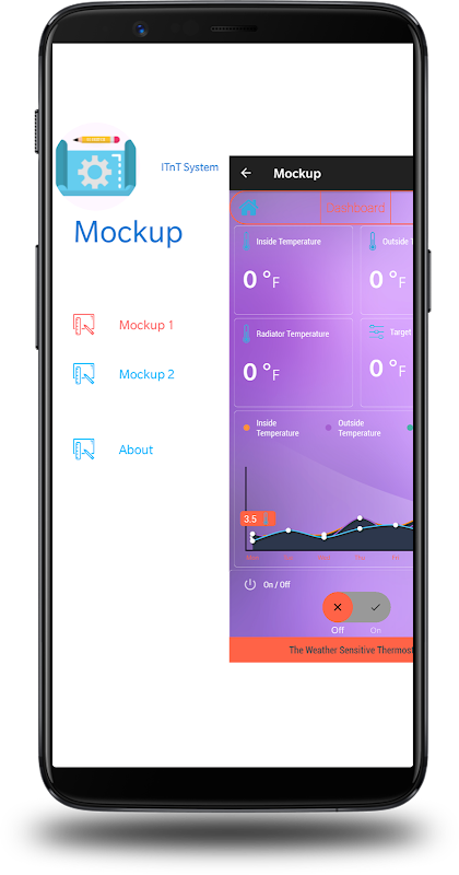 UI Mockup cho calo thiết bị điều chỉnh nhiệt ứng dụng android