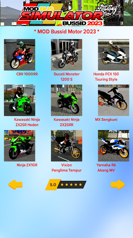 Đối với bản sửa đổi hoàn toàn mô tô kéo mod bussid, chúng tôi có nhiều mô hình thú vị, chẳng hạn như trò chơi mô tô kéo ninja ninja bussid thú vị và rất nhiều trình mô phỏng mô tô kéo bussid 2023 mới nhất mà bạn có thể chơi. Chúng tôi có một bộ sưu tập các mô phỏng kéo động cơ bussid gốc và chi tiết nhất.