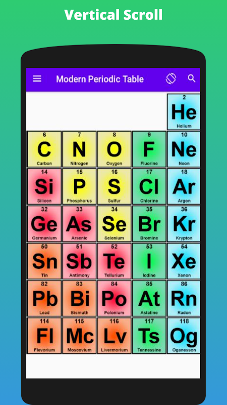 Đây là một ứng dụng Bảng tuần hoàn hiện đại tương tác. Ứng dụng này chứa tất cả các yếu tố được khám phá với các mô tả khác nhau như