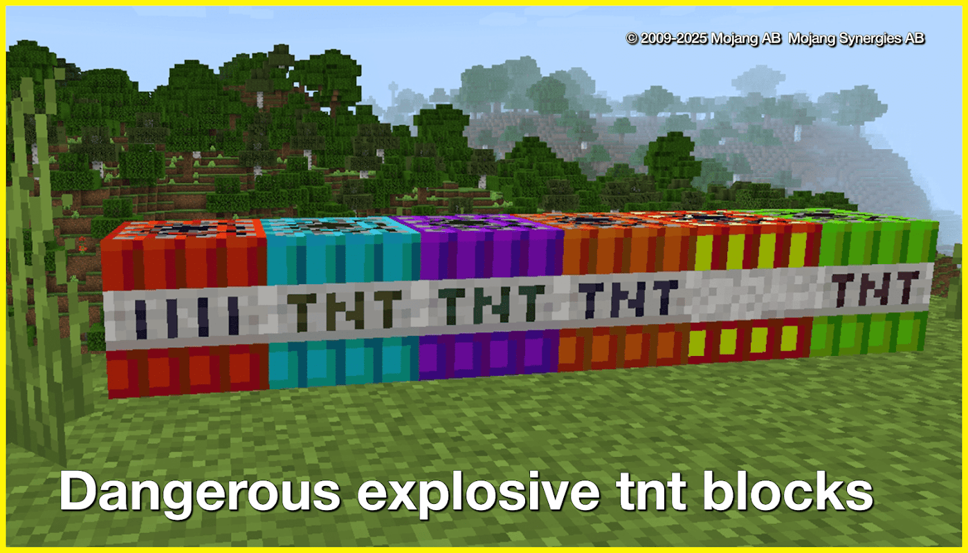 Tnt mod cho minecraft pe 1.21 - một addon hữu ích khác trong danh sách của chúng tôi. Nó có thể được lấy không chỉ bằng thủ công mà còn với sự trợ giúp của mod mcpe. Mặc dù trò chơi có tnt tiêu chuẩn cho minecraft nhưng chúng không mạnh chút nào. Và nếu bạn thêm mod tnt cho mcpe từ addons, bạn có thể tăng sức mạnh của chúng. Và nếu bạn muốn có được một khối tiêu chuẩn không có addon, bạn sẽ cần phải tạo ra các mod tnt cho minecraft. Và bạn vẫn sẽ không thể thay đổi đáng kể cảnh quan bằng một bản mod thuốc nổ như vậy. TNT mod Minecraft của chúng tôi chắc chắn sẽ có thể làm cho trò chơi trở nên dễ dàng hơn. Với chúng, bạn có thể sắp xếp những vụ nổ đáng kinh ngạc và thay đổi hoàn toàn cảnh quan. Chọn bất kỳ khối tnt mod nào và đặt nó vào đúng vị trí. Sau đó, bạn cần lấy đá lửa và ấn nó vào mod thuốc nổ. Sau những hành động này, bạn sẽ có rất ít thời gian để chạy khỏi nơi xảy ra vụ nổ.