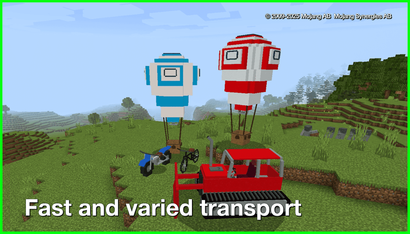 Và chúng tôi không thể rời xa bạn nếu không có mod vận chuyển cho minecraft để bạn có thể nhanh chóng đến đích. Với mod ô tô cho minecraft 1.21, bạn có thể di chuyển rất nhanh đến nơi mình cần. Chọn bất kỳ mod vận chuyển nào cho mcpe và tiếp tục cuộc hành trình của bạn. Bạn sẽ có cả ô tô cho minecraft 1.21 và nhiều mod phương tiện khác cho mcpe. Đây sẽ là mod vận chuyển dành cho mcpe như xe đạp, xe máy và thậm chí cả khinh khí cầu! Giờ đây việc di chuyển khắp thế giới trò chơi đối với bạn và bạn bè sẽ không còn là vấn đề nữa! Bạn sẽ có thể di chuyển bất cứ lúc nào và thay đổi phương tiện cho minecraft sang phương tiện khác. Và đừng quên đổ xăng cho xe mod của bạn cho mcpe.