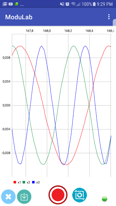 O aplicativo permite visualização dos dados em curvas (diferenciadas por cor) num gráfico de duas dimensões, em um vetor tridimensional, em uma tela digital (tipo cristal liquido) e em um visor tipo analógico. Os valores exibidos são acompanhados da escala ou da ordem de grandeza dependendo do modo de visualização.