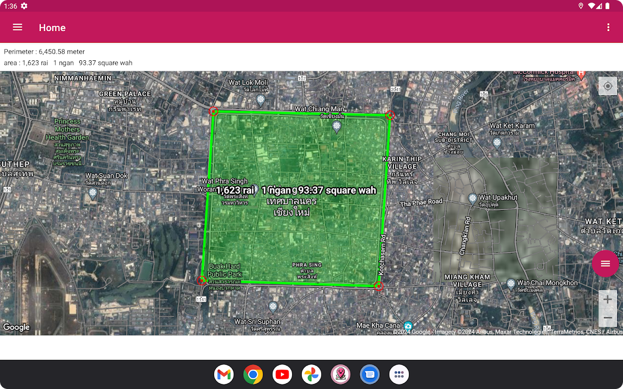 Đo diện tích trên Google Map, đo diện tích đất theo đơn vị Thái (rai-ngan-wa) và các đơn vị quốc tế khác nhau, cụ thể là mét vuông, vuông. kilômét, thước vuông, mẫu Anh, foot vuông, dặm vuông