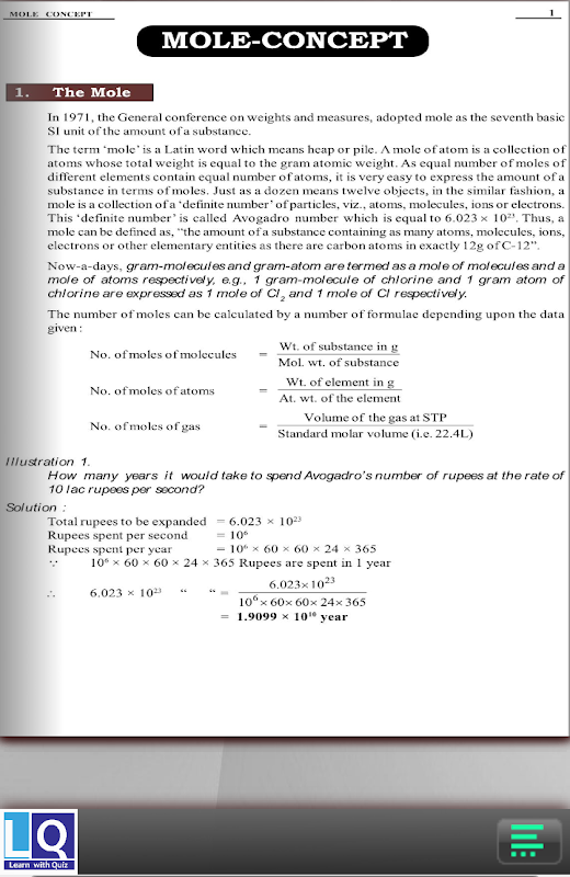 Chemistry (AIEEE, IIT-JEE Main, AIPMT, NEET-JEE, GujCET) Mole Concepts Interactive e-Book Education application