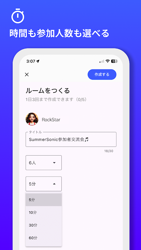 Bạn có thể chọn thời gian mở phòng từ 5 phút, 10 phút, 30 phút hoặc 60 phút và có thể tùy ý đặt số lượng người tham gia từ 2 đến tối đa 8 người. Nó có thể được sử dụng để phù hợp với nhu cầu của bạn, từ những cuộc trò chuyện ngắn, nhanh chóng đến những cuộc thảo luận dài.