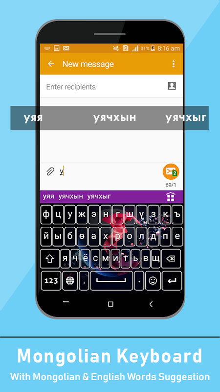 🖍 Mongolian Keyboard has word prediction functionality to help user in typing with high speed.