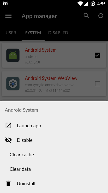 CLEAR_APP_CACHE: To clear the app cache via the app manager