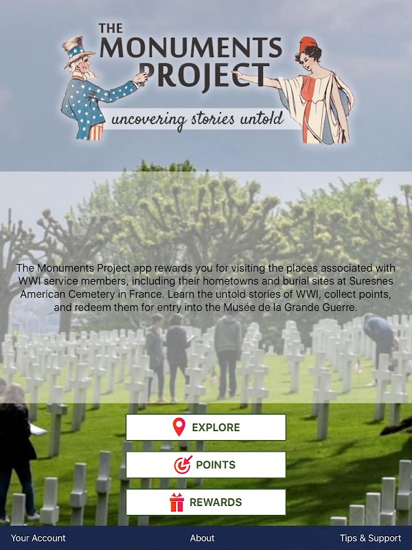 The Monuments Project app rewards you for visiting the places associated with World War One service members, including their burial sites at Suresnes American Cemetery in France. Learn the untold stories of World War One, collect points, and redeem them for discounted entry into the Musée de la Grande Guerre.