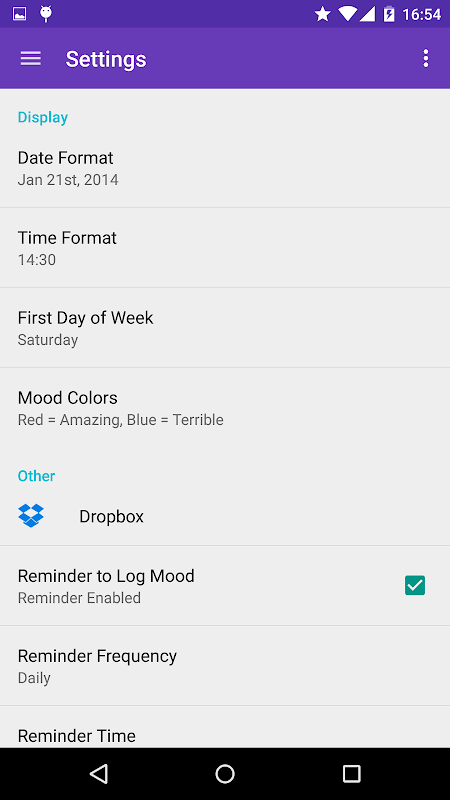 • Nâng cấp Mood Log để cho phép xuất khẩu các bản ghi của bạn như là một bảng tính có thể được xem với bất kỳ chương trình đọc bảng tính như Google Sheets và Microsoft Excel