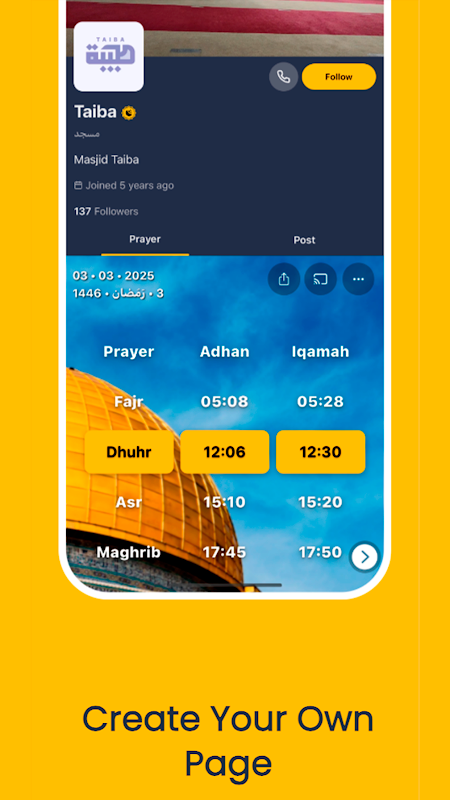 Nhận tin tức về nhà thờ Hồi giáo của bạn, đăng ký các sự kiện được tổ chức, tham khảo thời gian cầu nguyện của nó và được thông báo ngay lập tức để không bỏ lỡ bất kỳ lời cầu nguyện tang lễ từ những người xung quanh bạn!