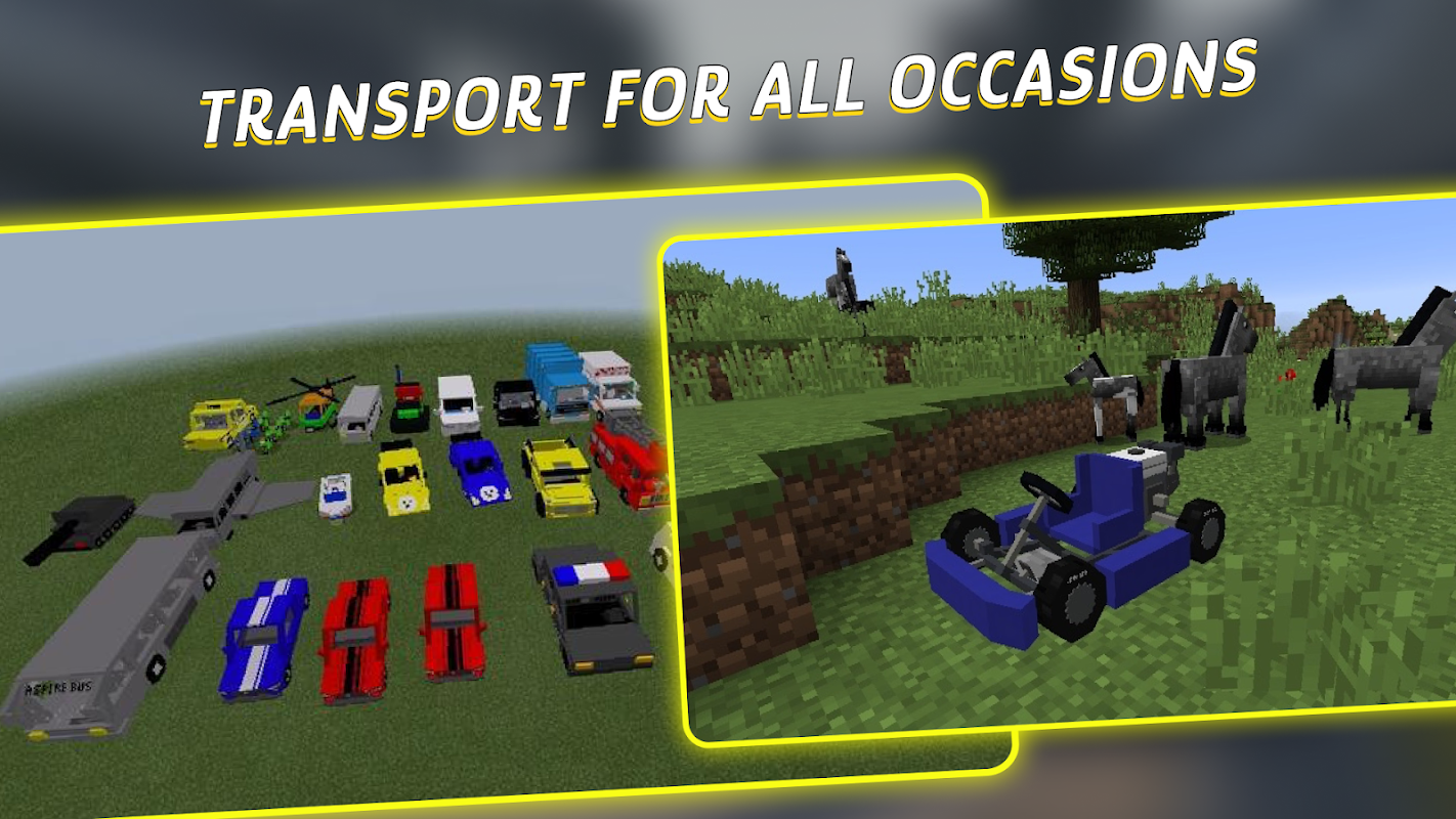 👥 Các bạn ơi, Car Mod cho MCPE có quy trình chơi dễ dàng, lựa chọn bản đồ và thủ công giá cả phải chăng để lưu trữ đội xe lớn này 😱. Hoạt hình chuyển động, quay bánh xe và những thứ nhỏ nhặt khác trong Ô tô và Xe cộ Addon sẽ mang lại nhiều người hâm mộ 🌏 và thú vị cho thế giới Phiên bản bỏ túi của chúng tôi. Nếu chúng ta muốn làm chủ chiếc xe buýt, chiếc xe này được cung cấp rất đa dạng nhưng mọi thứ đều theo thứ tự. Trò chơi có cơ chế rõ ràng đơn giản, giao diện thông minh để chọn và đặt ô tô, bởi vì ô tô nào cũng cần được bảo trì 🔑 và chăm sóc ✨.