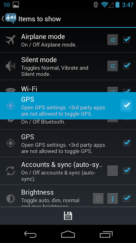 - Accounts & sync (Auto-sync) : Shows & toggles accounts & sync (auto-sync).