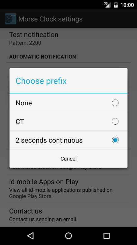 Một Prefix có thể được chơi trước khi thời gian. Bạn có thể lựa chọn giữa CT (giao thông bắt đầu, -.¸-.-) hoặc 2 giây giai điệu liên tục.