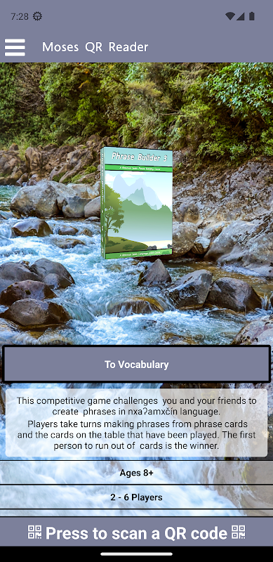 Ứng dụng đồng hành QR Reader dành cho Moses Games thực tế.