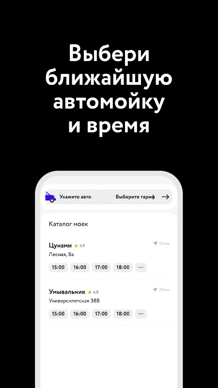 Ở Moy, bạn sẽ thấy những tiệm rửa xe nào ở gần đó và bạn có thể đặt lịch hẹn với họ vào thời gian nào. Chọn tiệm rửa xe, đặt lịch và sử dụng Moyservice