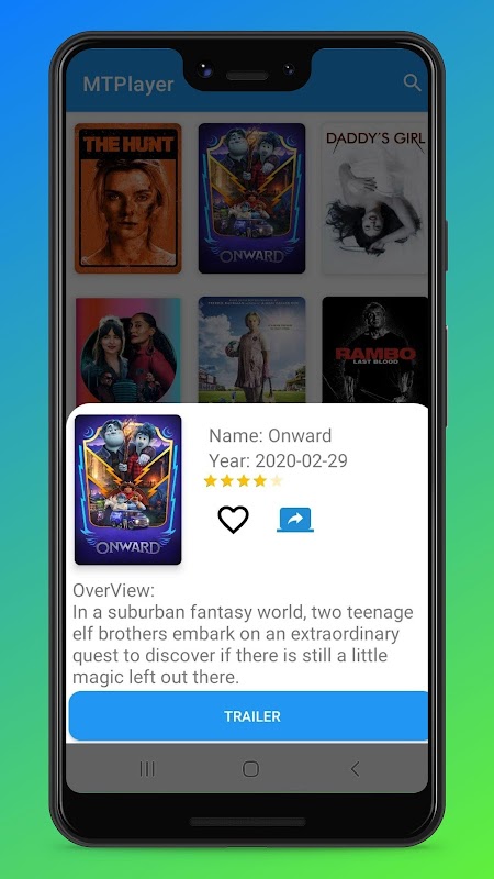 MTPlayer is the new way to search for a movie and TV shows and watch there trailers in the app.This application provides latest movies,top rated movies, upcoming movies and latest TV shows, Airing Today,Top Rated ,Popular TV shows.